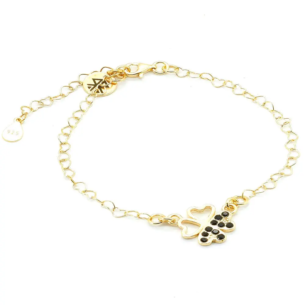 Das Armband "Askja" besticht durch seine wunderschöne Kette, deren Kettenglieder in zarten Herzen geformt sind. Der besondere Anhänger in Form eines vierblättrigen Kleeblatts symbolisiert Glück und Zufriedenheit. Zwei der Herzen sind zusätzlich mit funkelnden schwarzen Zirkonia-Steinen verziert, die dem Armband einen Hauch von Glamour verleihen und für einen strahlenden Blickfang sorgen.