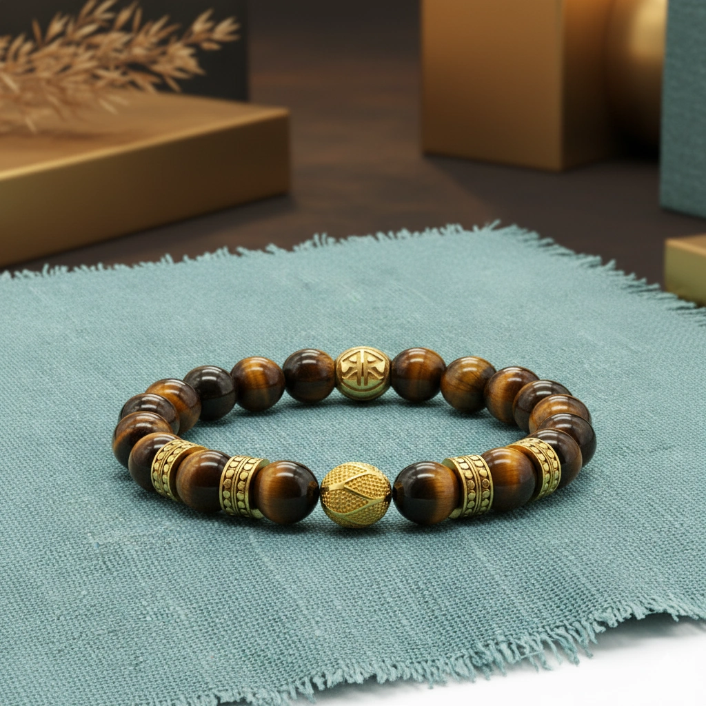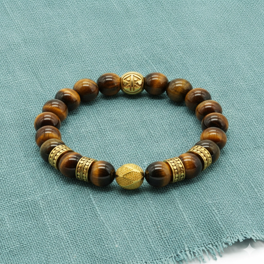 Entdecke das handgefertigte Tigerauge-Armband "Elisa" – ein ausdrucksstarkes Schmuckstück, das Eleganz und Symbolik perfekt vereint. Mit glänzenden Tigerauge-Perlen, die für ihre faszinierenden Farben und schimmernden Oberflächen bekannt sind, zieht dieses Armband alle Blicke auf sich. Hergestellt aus hochwertigem 925 Sterling Silber und vergoldet, bietet es einen extravaganten Look, der sich sowohl für den Alltag als auch für besondere Anlässe eignet.