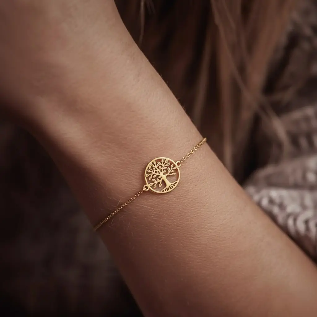 Das Armband "Emilía" besticht durch seine feine, zarte Kette, die angenehm um dein Handgelenk schmiegt. Der kunstvoll gestaltete Lebensbaum-Anhänger symbolisiert Wachstum, Stärke und die tiefen Wurzeln, die uns verbinden. Mit seinem zeitlosen Design ist das Armband die perfekte Ergänzung für jeden Anlass – sei es im Alltag oder zu besonderen Feierlichkeiten.