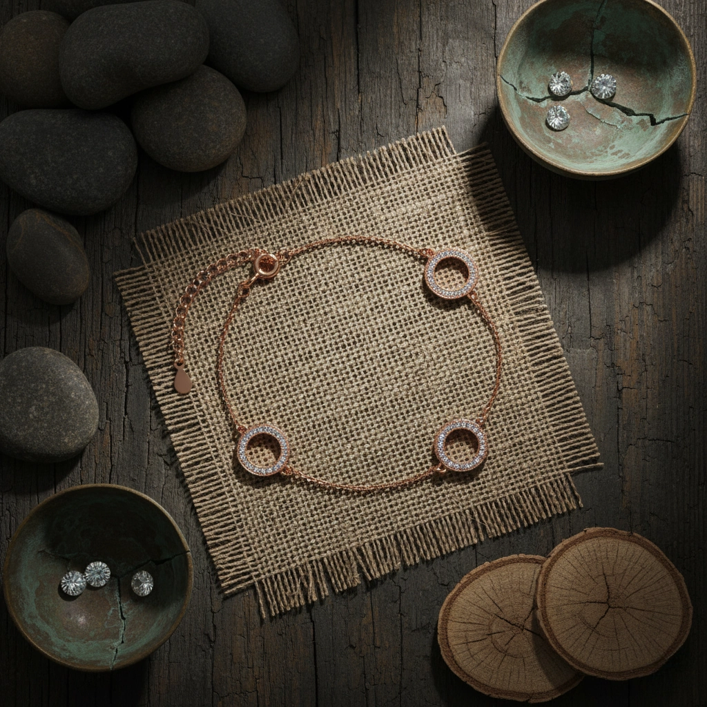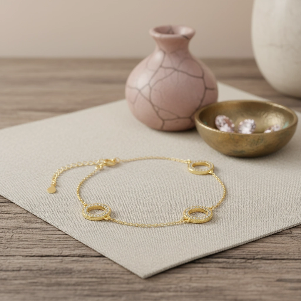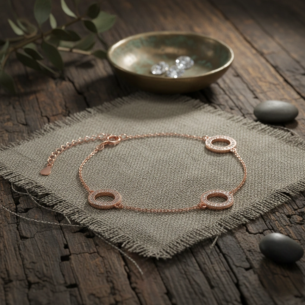 Das Besondere an diesem Armband sind die drei einzelnen Kreis-Anhänger, die kunstvoll mit funkelnden Zirkonia-Steinen verziert sind. Die Kreise stehen symbolisch für Vollkommenheit, Unendlichkeit und die ewige Verbundenheit zwischen Menschen. Sie erinnern uns daran, dass es im Leben keine Enden gibt, sondern nur neue Anfangsphasen. Diese tiefgründige Bedeutung macht das Armband "Nikita" nicht nur zu einem stilvollen Accessoire, sondern auch zu einem bedeutungsvollen Geschenk für dich selbst oder einen geliebten Menschen.