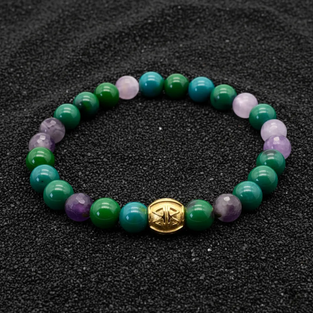 Entdecke das strahlende Armband "Sunny" – ein einzigartiges Schmuckstück, das die kraftvollen Eigenschaften von Amethyst und Jaspis in perfekter Harmonie vereint. Dieses wunderschöne Armband ist nicht nur ein modisches Accessoire, sondern auch ein kraftvoller Talisman, der positive Energie und Lebensfreude in dein Leben bringt.