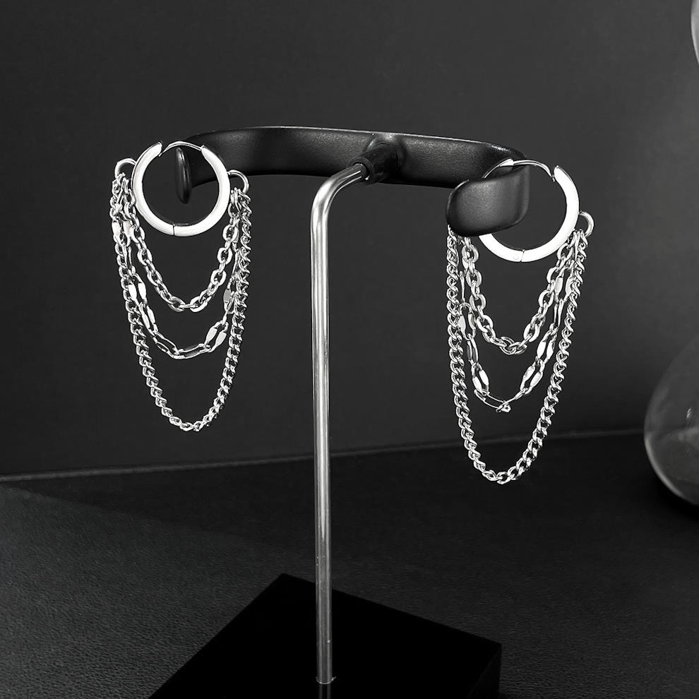 Verleih deinem Look mit den beeindruckenden Creolen "Viktor" einen Hauch von Eleganz und Ausdruckskraft! Diese außergewöhnlichen Ohringe vereinen modernes Design mit verspielten Quasten in Kettenform, die jedem Outfit das gewisse Etwas verleihen.