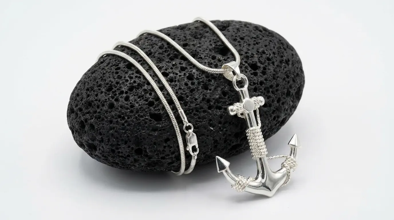 Dieses himmlische Schmuckstück lässt Frauenherzen höherschlagen! Eine Schlangen Halskette mit einen schönen SterlingSilber Anhänger, der als wunderschönen Anker gesetzt wird. Das Accessoire wird an jedem Dekolleté zum atemberaubenden Blickfang! Diese besondere Halskette darf in keiner Schmucksammlung fehlen. Sowohl am Alltagslook, als auch an einem festlichen Abendkleid kommt die Kette ideal zur Geltung und kann zudem mit jeglichen Schmuckstücken kombiniert werden. Ein Accessoire mit Blickfang für sich selbst oder zum Verschenken.