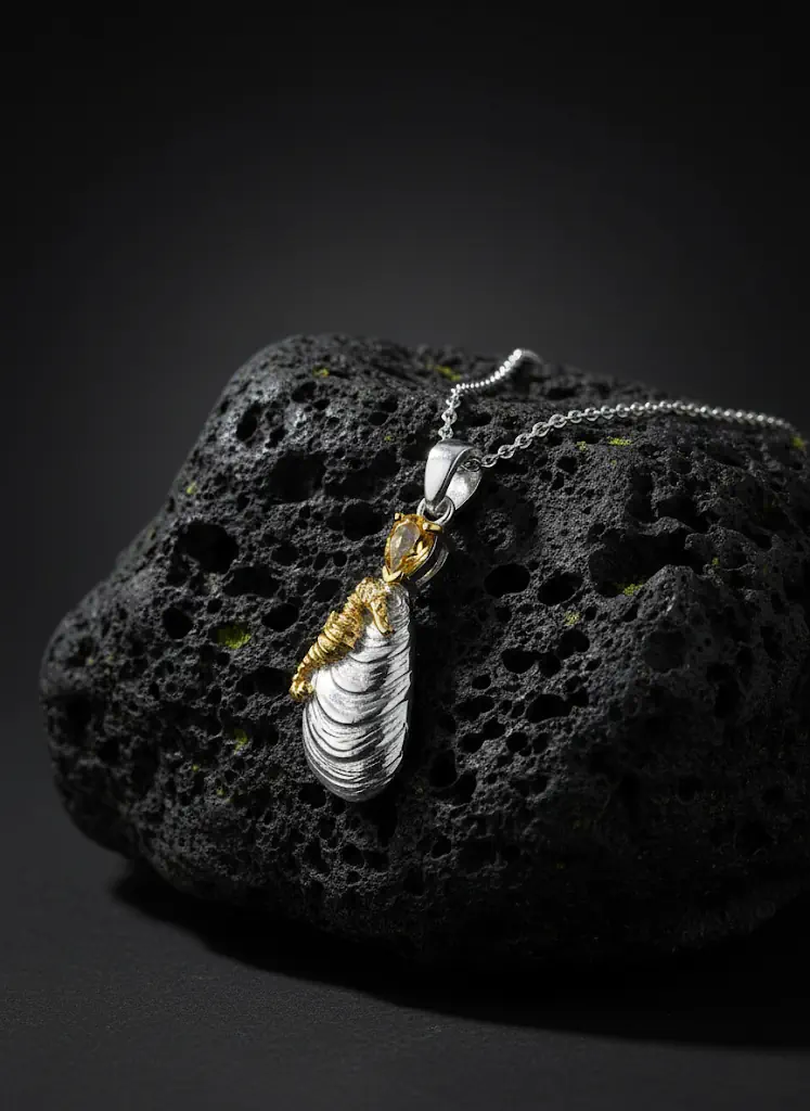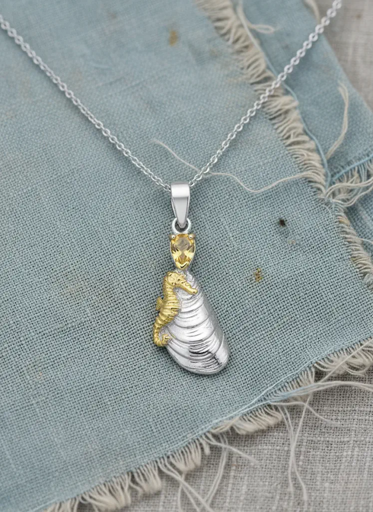 - Halskette mit symbolischem Anhänger "Seepferdchen und Muschel"
