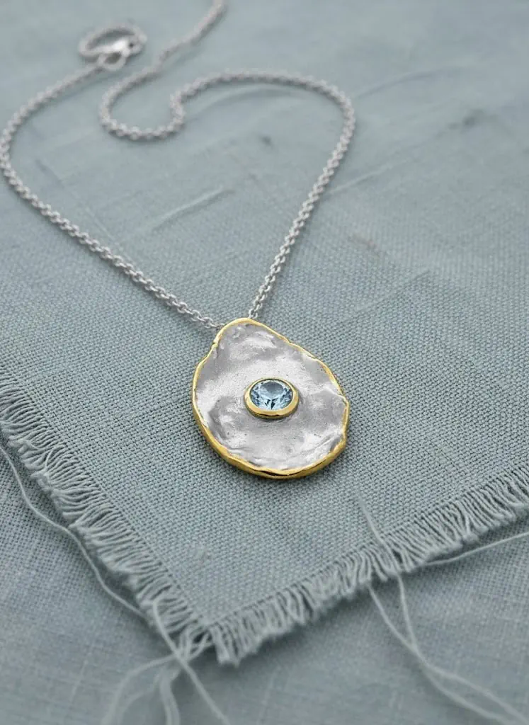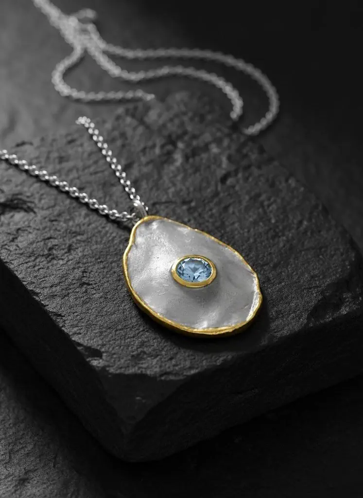 Mit dieser Halskette liegen Sie voll im Trend und beweisen Ihr Händchen für coole Styles. Der schöne Anhänger verziert mit himmelblauem Topas macht Laune auf trendige Outfits. Das zarte Accessoire wird an jedem Dekolleté zum atemberaubenden Blickfang! Diese besondere Halskette darf in keiner Schmucksammlung fehlen. Ein Accessoire mit Blickfang für sich selbst oder zum Verschenken.Schützender Talisman steht für Schutz,Liebe,Ordnung und Harmonie.