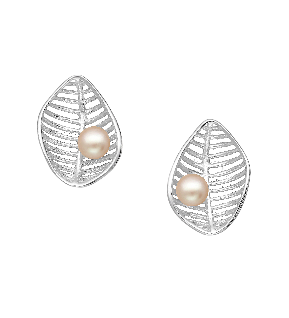 - Zeitlos schöne und klassische Blatt Ohrstecker mit peach Süßwasserperlen