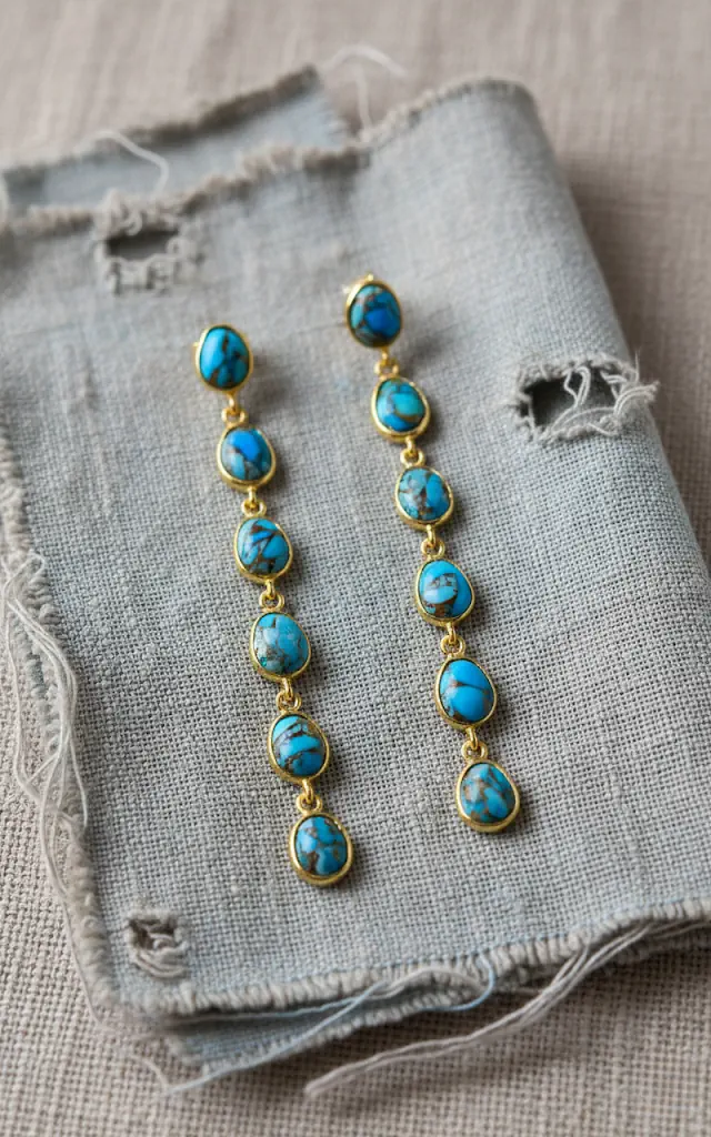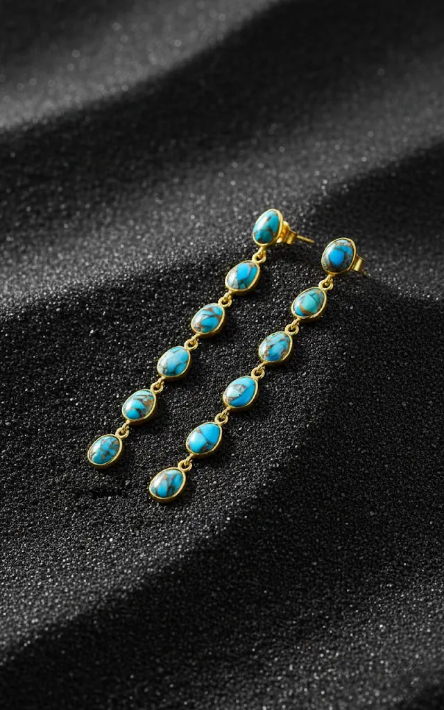 Die eleganten Ohrstecker sind ein Must-Have in jeder Schmucksammlung.Die sinnlichen Ohrstecker veredeln jedes Frauen Outfit und verleihen der Trägerin beneidenswerte Eleganz.Diese schönen und klassischen Ohrstecker im Indianer Look sind aus 925 Sterling Silber vergoldet gefertigt und mit Kupfer-Türkis Steinen verziert. Der coole Silberschmuck im angesagten zeitlosem Design darf in keinem Schmuckkästchen fehlen!