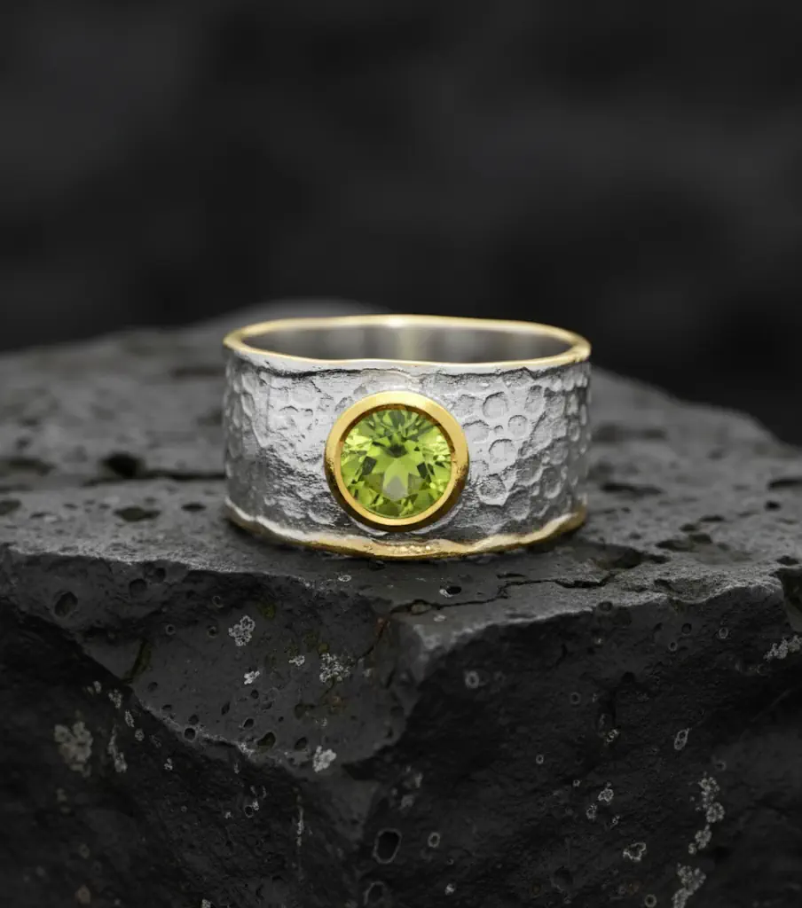 Ein Schmuckstück, das Dich mit seiner hochwertigen Optik und seinen feinen Details sofort in den Bann zieht. Wunderschöner Ring aus 925er Sterling Silber 22 Karat Gelbgold plattiert und mit schönem Peridot Edelstein verziert.Symbol für Schutz, Stärke ein kraftvoller Talisman. Lass Dich von diesem besonderen Ring im Alltag oder zu speziellen Anlässen begleiten. Ein absolutes Must-Have mit Symbolcharakter.