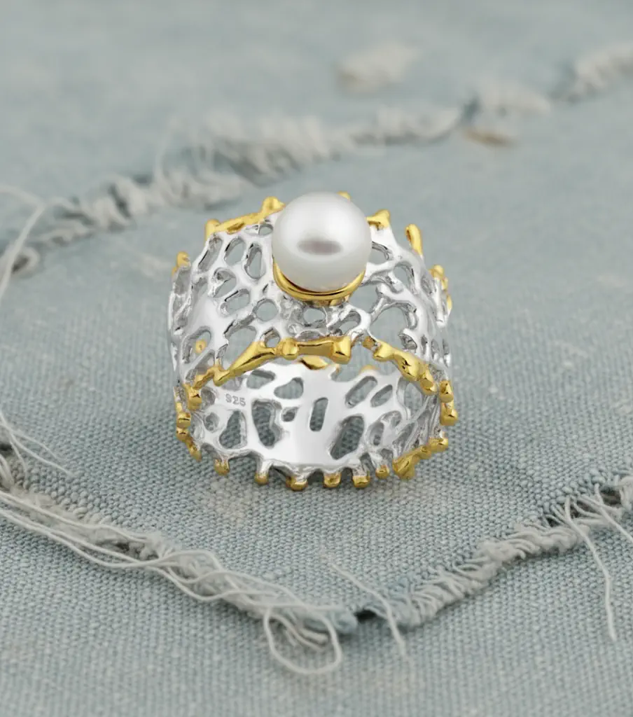 Ein Schmuckstück, das Dich mit seiner hochwertigen Optik und seinen feinen Details sofort in den Bann zieht. Wunderschöner Ring aus 925er Sterling Silber 22 Karat Gelbgold plattiert und weißem Rhodium mit schöner Süßwasserperle verziert.Symbol für Schutz, Stärke ein kraftvoller Talisman. Lass Dich von diesem besonderen Ring im Alltag oder zu speziellen Anlässen begleiten. Ein absolutes Must-Have mit Symbolcharakter.