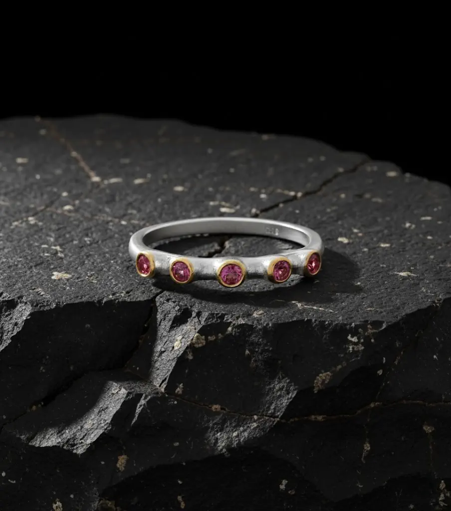 Ein Schmuckstück, das Dich mit seiner hochwertigen Optik und seinen feinen Details sofort in den Bann zieht. Wunderschöner Ring aus 925er Sterling Silber 22 Karat Gelbgold plattiert und weißem Rhodium mit fünf Rodolithen verziert.Symbol für Schutz, Stärke ein kraftvoller Talisman. Lass Dich von diesem besonderen Ring im Alltag oder zu speziellen Anlässen begleiten. Ein absolutes Must-Have mit Symbolcharakter.